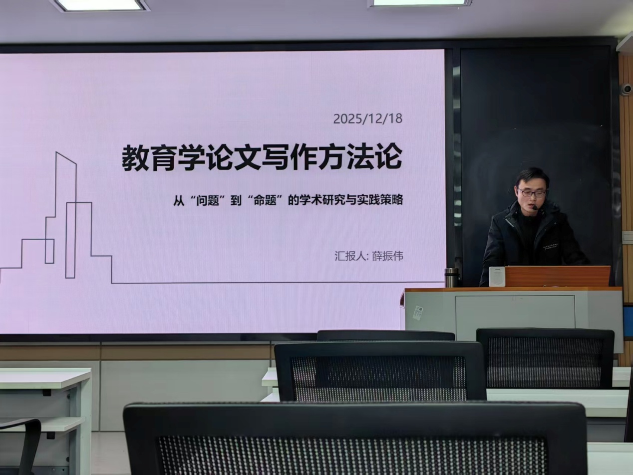 (通讯人 亓少润)2025年12月18日下午2时30分,bv伟德国际1946第七届研究生学术科技节校内导师论坛最后一场在文科楼910报告厅成功举行,本期的主题是《教育学论文写作方法论》。本次报告由严磊老师主持,薛振伟老师担任主讲人,教育类全体研究生到场参与学习。