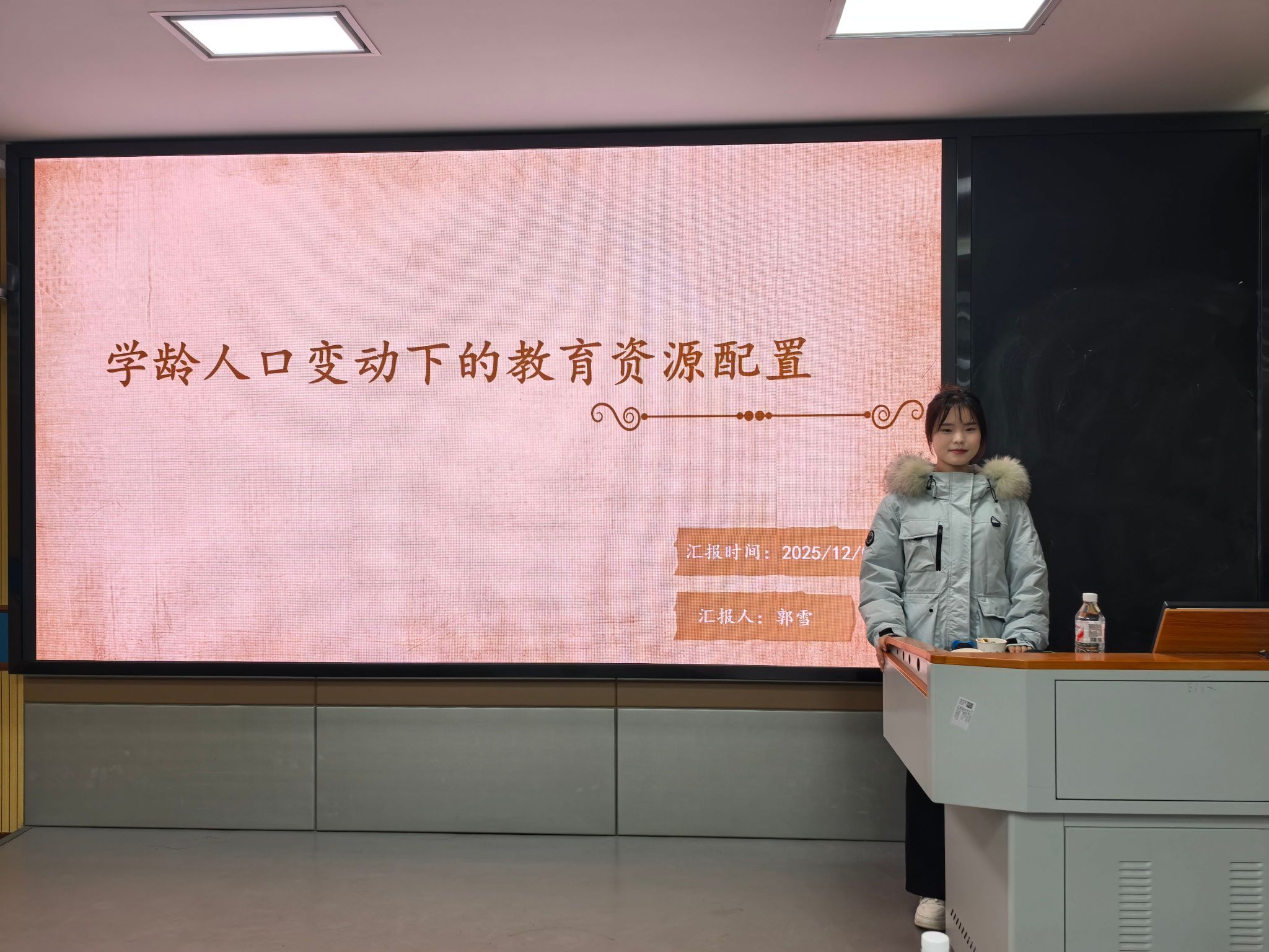 最后,郭雪以《学龄人口变动下的教育资源配置》为题,分析我国学龄人口数量与结构变动的趋势及对教育资源配置的影响。她通过数据梳理指出,学龄人口流动与增减失衡导致部分地区资源短缺与闲置并存的矛盾。基于此,提出建立学龄人口动态监测机制、优化教育资源空间布局、推进资源均衡配置、完善多元供给体系等建议,为实现教育资源高效利用与均衡发展提供决策参考。