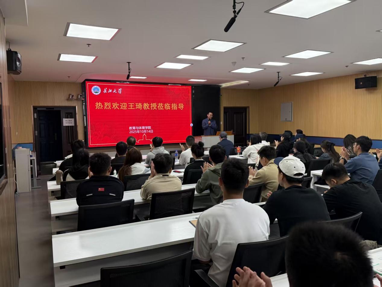 (通讯员:蒋林孜)为推动体育与人工智能深度融合,助力师生探索青少年体质健康促进新方向,近日,伟德victor1946特邀首都体育学院王琦教授,在东校区文科楼910教室开展以“体育人工智能赋能青少年体质健康促进”为主题的学术讲座。学院副院长宋永晶、杨青宝,部分硕士生导师以及2024级、2025级体育类研究生参会聆听。讲座由院长助理严磊博士主持。