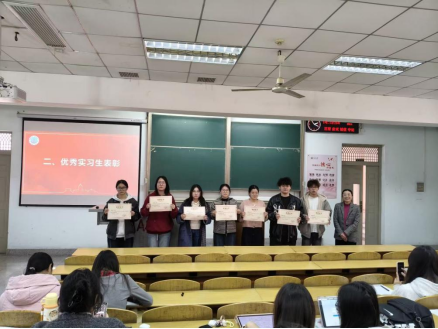 会议伊始,周婷老师带领同学们回顾了3个月来的实习生活,从夏末的短袖短裤到初冬的毛衣外套,季节更迭间,同学们怀揣教育热忱,顶着烈日、迎着风雨,在校园与实习学校之间奔波穿梭。面对从 “学生” 到 “准教师” 的身份转变挑战,以及考研备考与实习工作的双重压力,同学们主动调适、积极平衡,以扎实的专业素养和务实的工作态度圆满完成各项实习任务,赢得了各实习学校的高度评价与一致认可。会上,周婷老师为表现突出、成绩优异的优秀实习生颁发荣誉证书并致以热烈祝贺,这不仅是对优秀实习生的肯定与鼓励,同时也对其他实习生起到了示范与带动的作用。