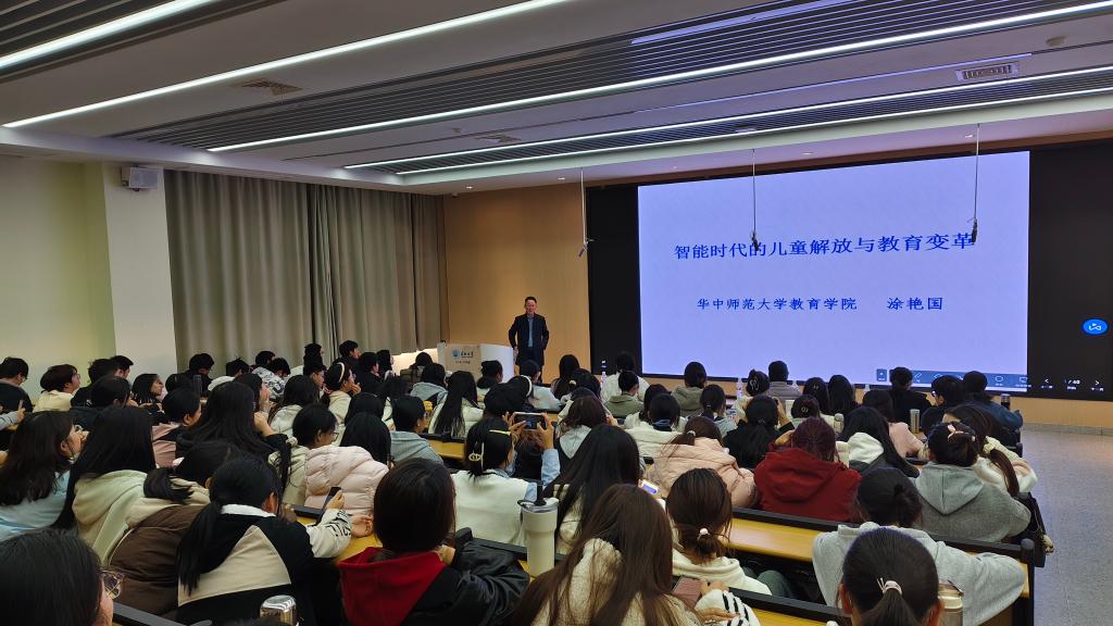 (通讯员 刘琦)2025年11月20日14:00,16教A109智慧教室座无虚席,一场以“智能时代教育新生态”为主题的精彩讲座如期举行。华中师范大学教育学院涂艳国教授担任主讲人,其中“儿童解放与教育变革”是本次讲座的核心议题。报告会由bv伟德国际1946院长张艳红主持,教育学专业本科生、研究生及教育系全体教师共计160余人聆听报告。