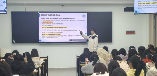 在诚信应考教育环节,班主任明确了四六级考试及期末考试的时间安排,督促同学们合理规划复习。结合《伟德victor1946学生违纪处分办法》《国家教育考试违规处理办法》,班主任详细解读了考试违纪、作弊的具体情形与严肃后果:考试违纪将取消科目成绩或给予警告以上处分;考试作弊将取消当次各科成绩或给予留校察看处分;代考、使用通讯设备作弊、组织作弊等严重行为,将直接开除学籍,情节严重者还需承担法律责任。为强化警示效果,班主任分享了多起典型案例,包括伟德victor1946学生因代考、手机传答案被开除学籍,四六级考试中撕毁或替换答题卡受处分,以及研究生入学考试组织作弊被判刑的事例,提醒同学们摒弃侥幸心理,坚守诚信底线。