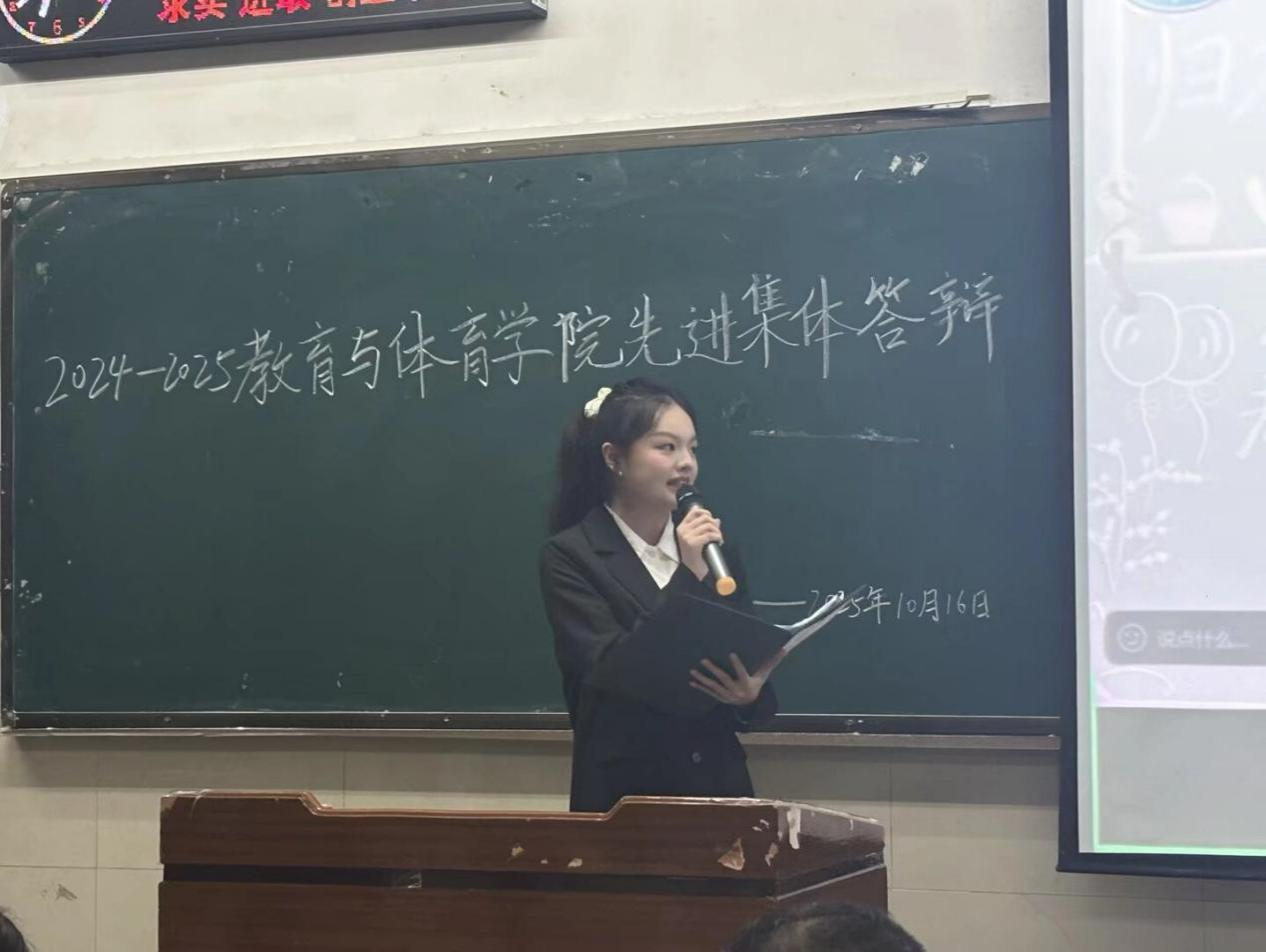 随后,进入答辩环节:标兵寝室代表通过 PPT分享互帮互助故事、展示整洁内务。有的坚持每日自习打卡,有的定期组织团建,有的积极参与志愿服务,五分钟展示浓缩了寝室生活的温度与深度;先进班集体代表从制度建设、思想引领、学风营造等维度汇报,有的建立学业帮扶机制追求 “零挂科、多获奖”,有的通过主题团日活动强化青年使命感,有的在文体赛事中屡获佳绩,展现强大凝聚力。