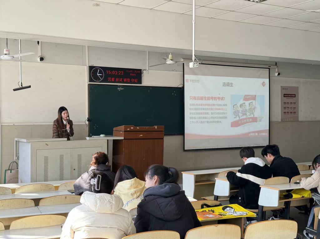 在事业单位板块,占欢老师全面阐述了其与公务员体系的差异,使学生对不同编制类型有了更为清晰的认知。对于选调生这一特殊公职岗位,老师详细讲解了其在发展前景上的区别,为有志向、有潜力的学生提供了一条值得深入探索的职业道路.除此之外,占老师还介绍了 “三支一扶” 计划、金融银行、军队文职、国有企业、医疗卫生等多元化的就业方向,深入解读了其就业特点与发展潜力。
