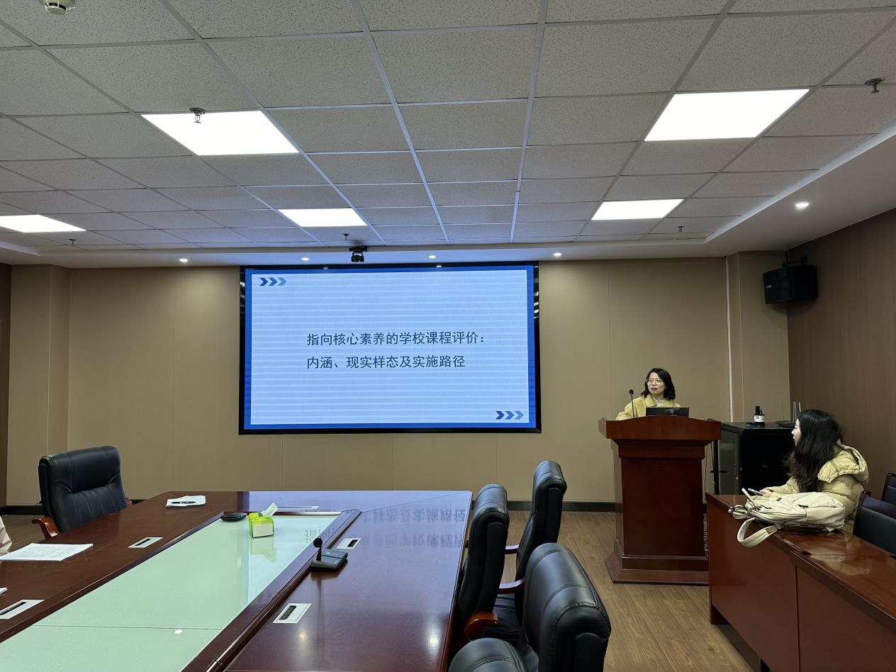首先进行汇报的是李梦雪,她汇报的主题是《指向核心素养的学校课程评价:内涵、现实样态及实施路径》,她指出,学生核心素养已经成为我国基础教育领域的热门研究课题之一,核心素养从理念表达走向具体实施,必须与学校课程评价这个关键要素相结合,需要基于学科核心素养的课程标准,使用多元评价手段和方法,多元主体共同参与评价过程,充分发挥学校课程评价的积极作用。