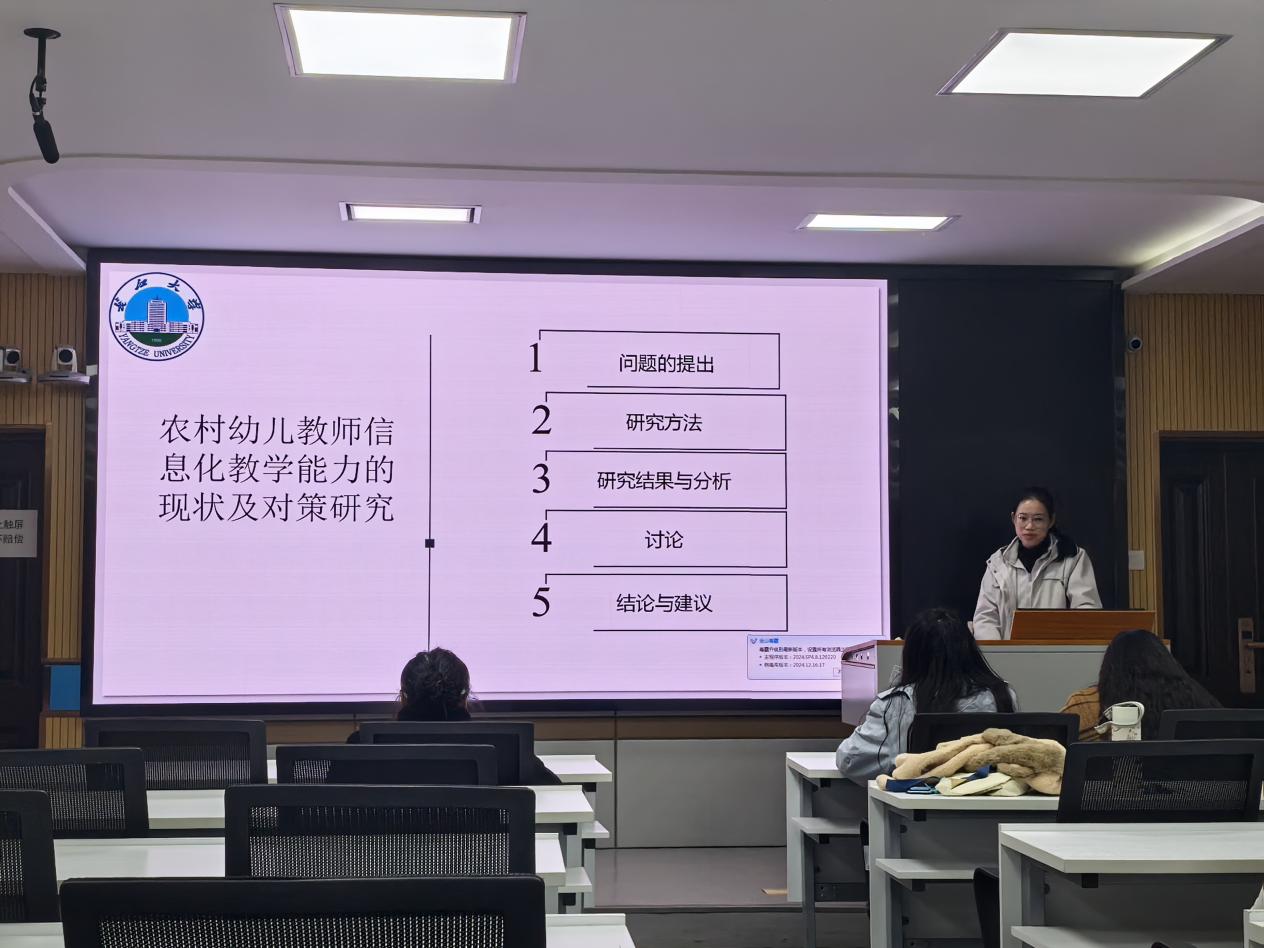 (通讯员 秦源)2024年12月16日晚,bv伟德国际1946第六届研究生学术科技节第七场活动在文科大楼910报告厅举行。本次汇报人是学前教育学方向的研究生蒋淼、胡英杰、侯晓曼、赵玉娇,bv伟德国际19462023级、2024级学前教育专业研究生前来学习观摩。院研究生会宿建部部长周璇主持了本次活动。